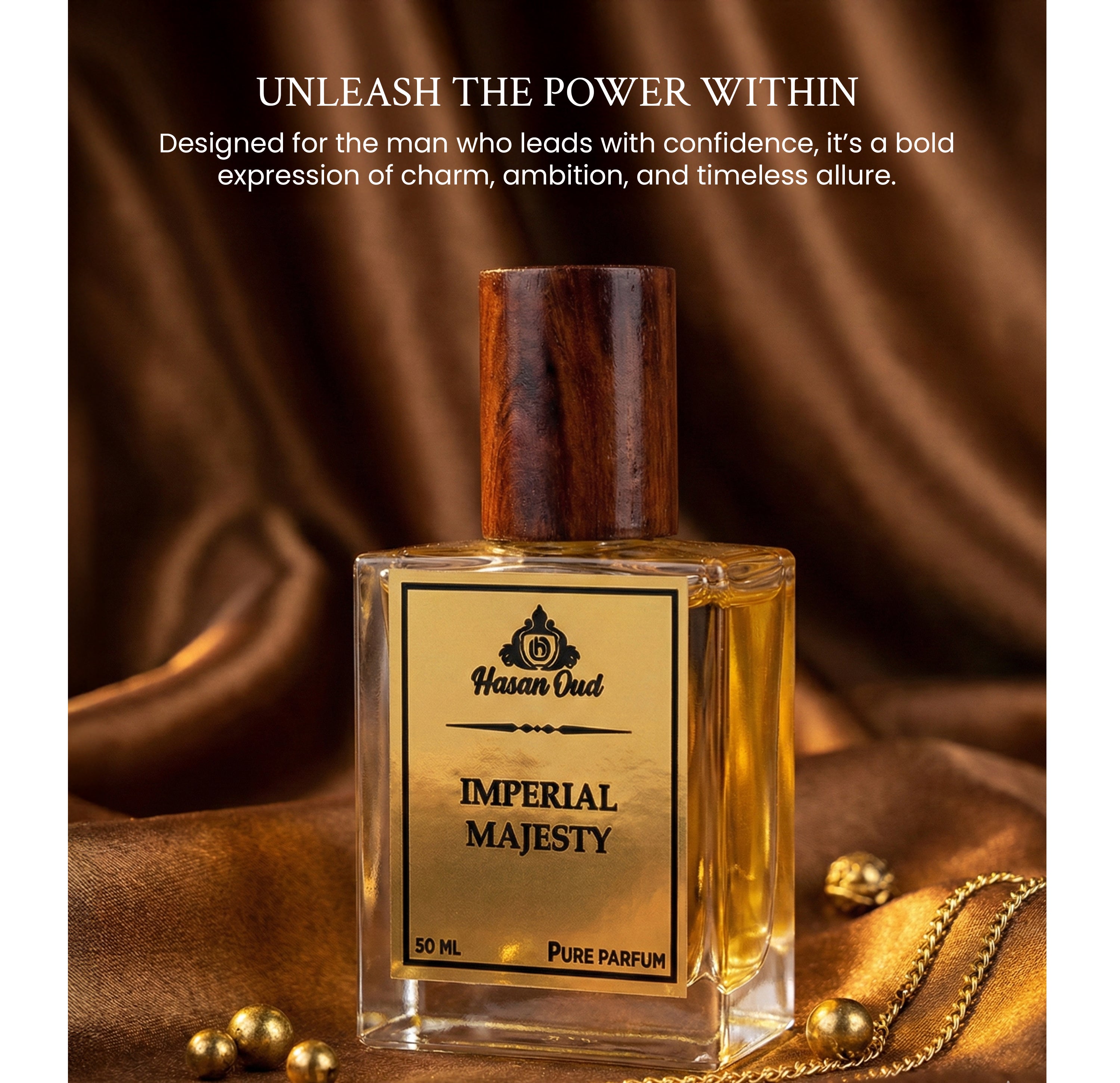 Oud and rose speak of strength and grace. Leather and tobacco whisper of depth and wisdom. Amber, honey, and frankincense wrap it all in a golden aura, rich and eternal.